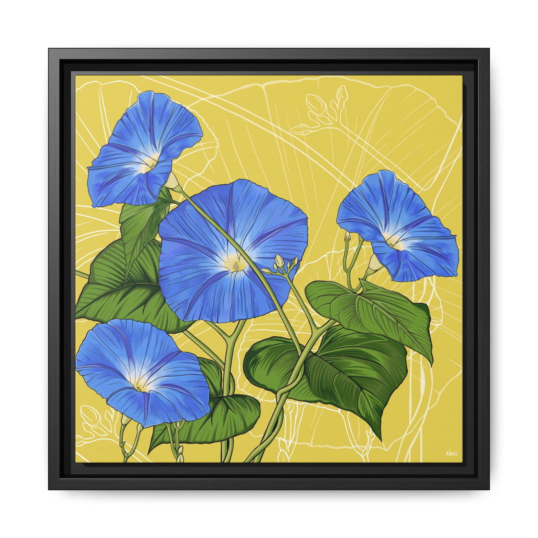 Blue Morning Glory: September Birth Month Flower — Framed Canvas Print Wall Art