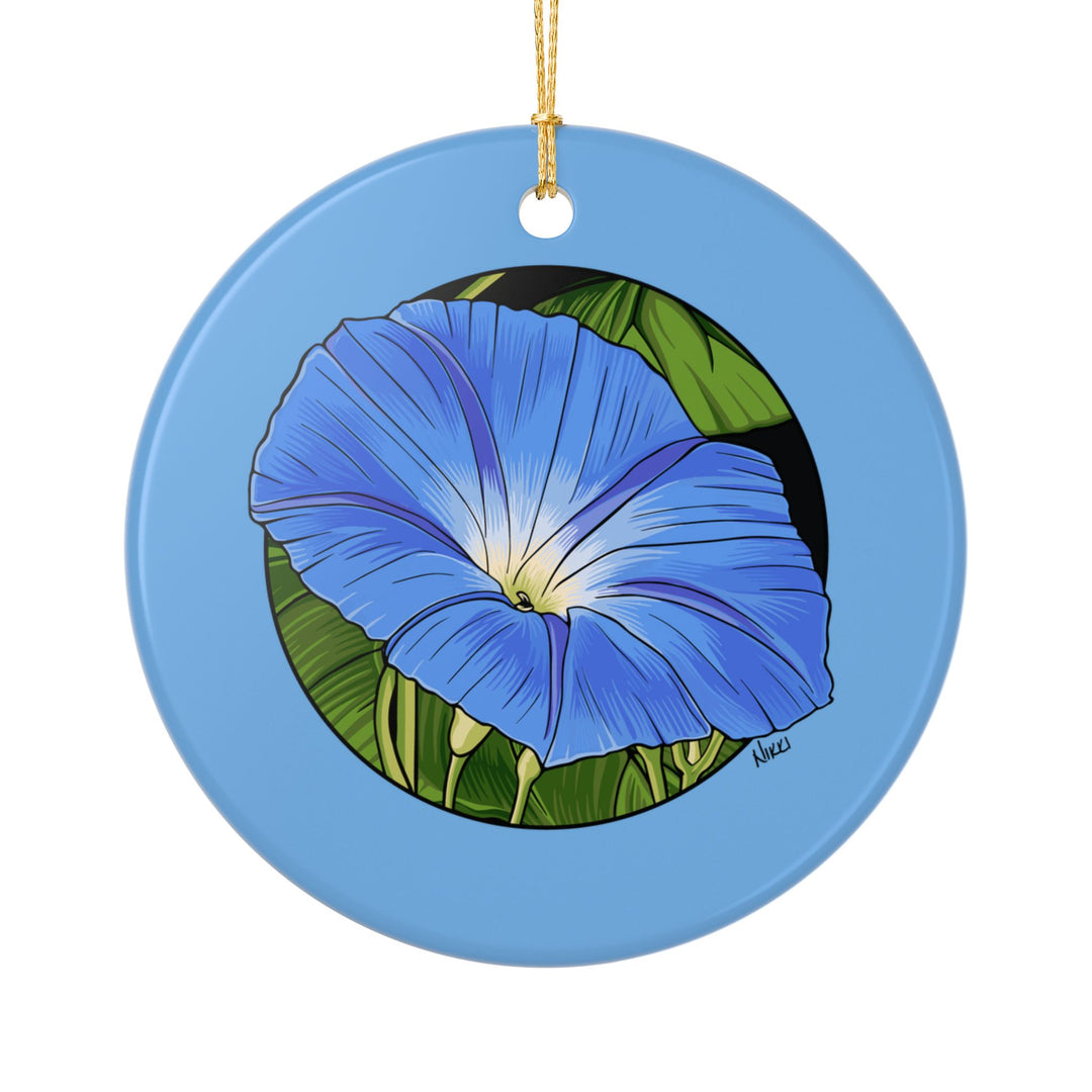 Morning Glory Ceramic Ornament — Floral Two-Sided Holiday Decoration