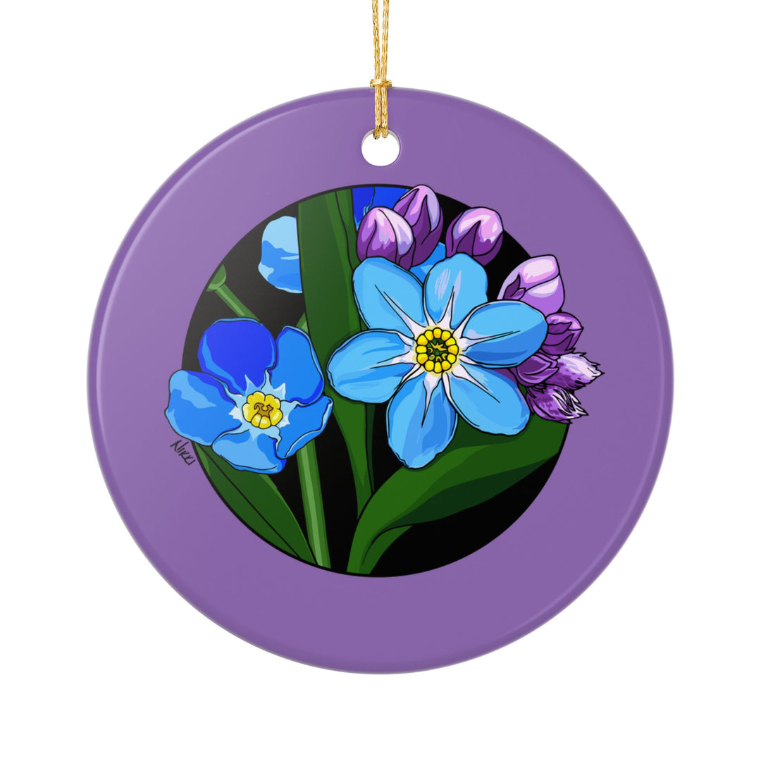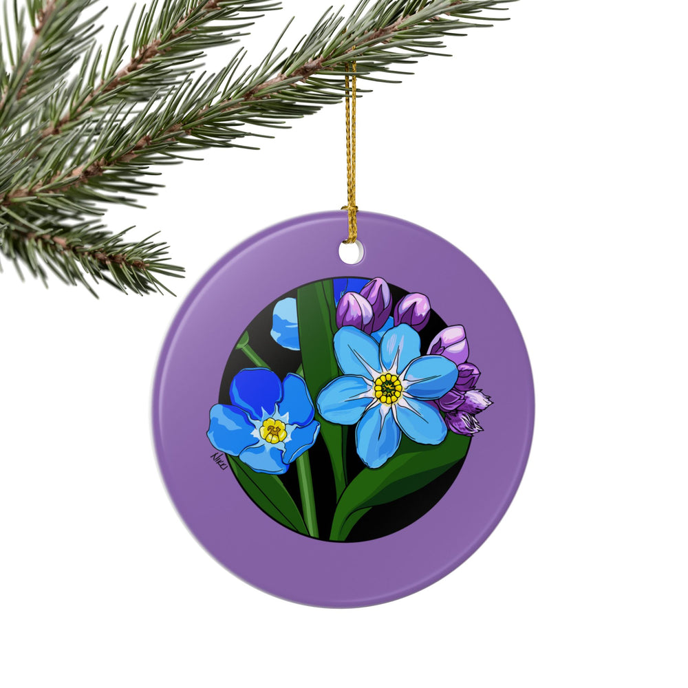 Forget-Me-Not Ceramic Ornament — Double-Sided Floral Holiday Decor