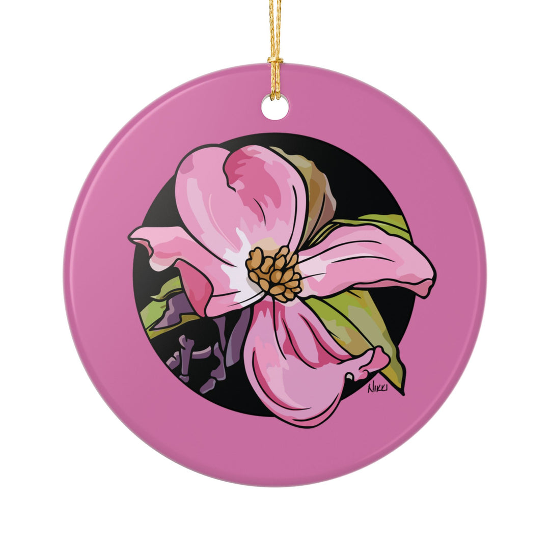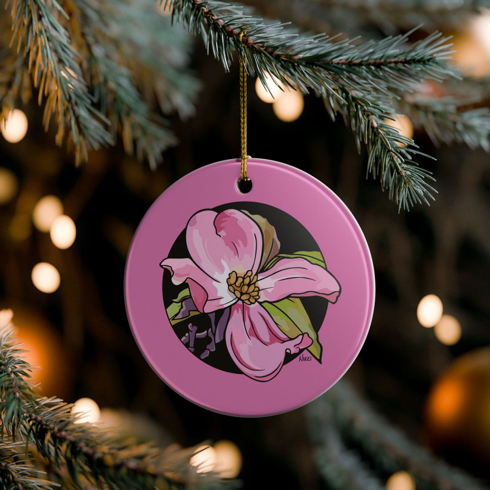 Pink Dogwood Ceramic Ornament — Double-Sided Floral Holiday Decor