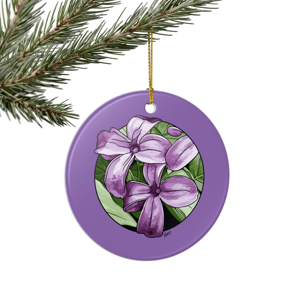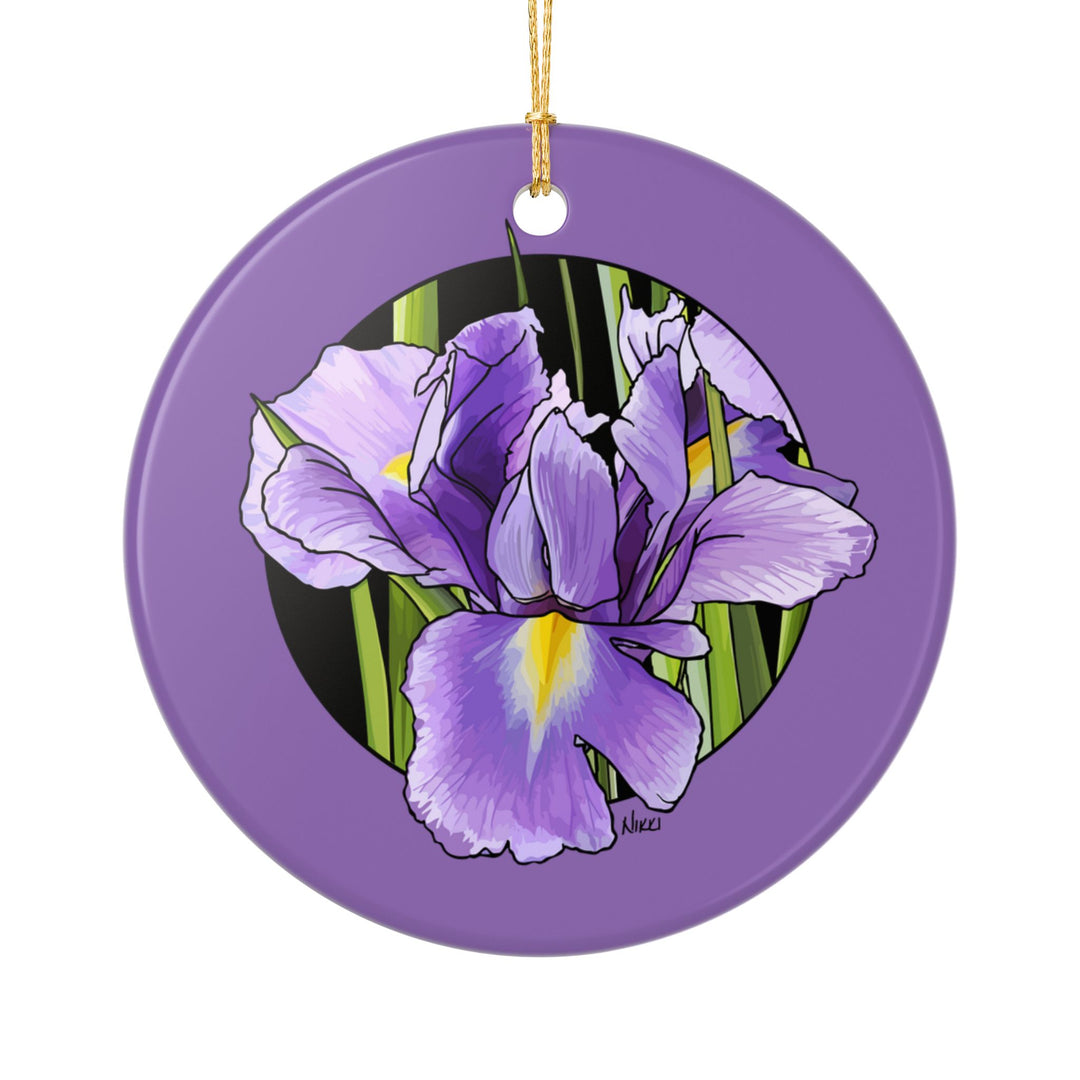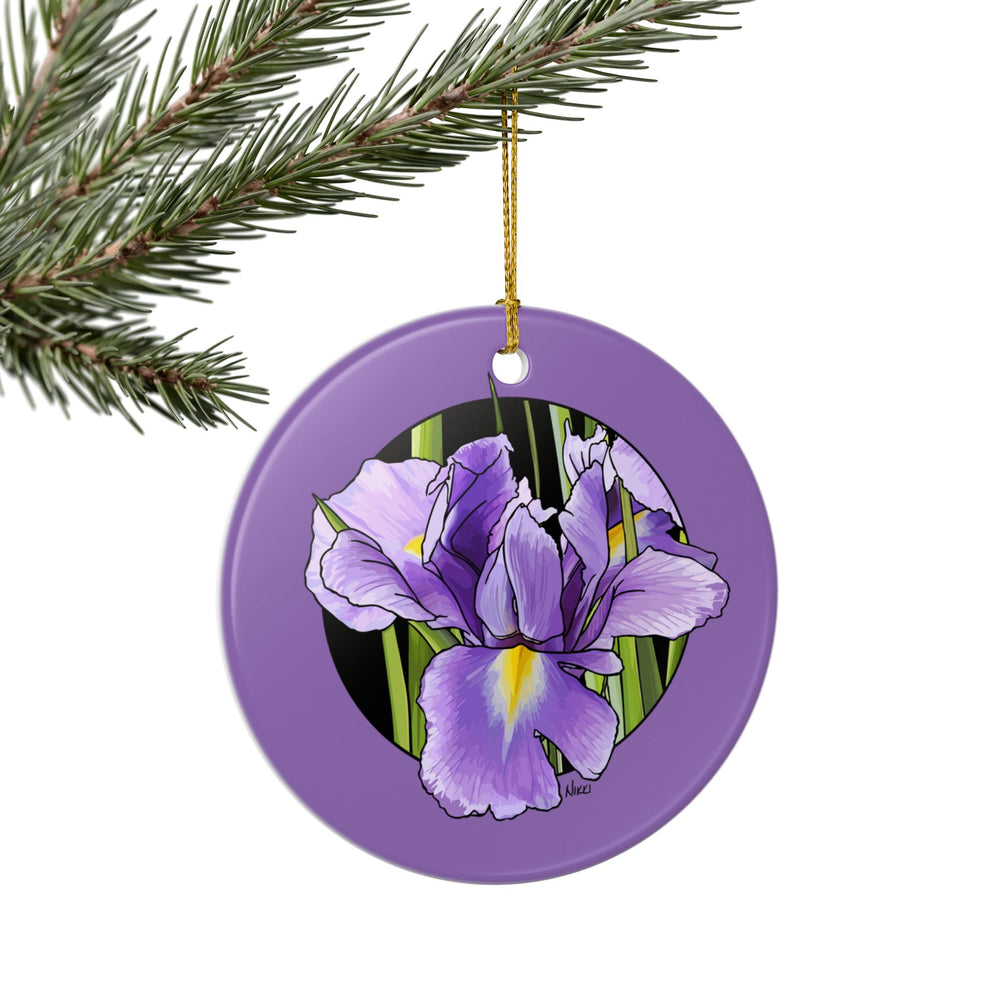 Purple Iris Ceramic Ornament — Double-Sided Floral Holiday Decoration