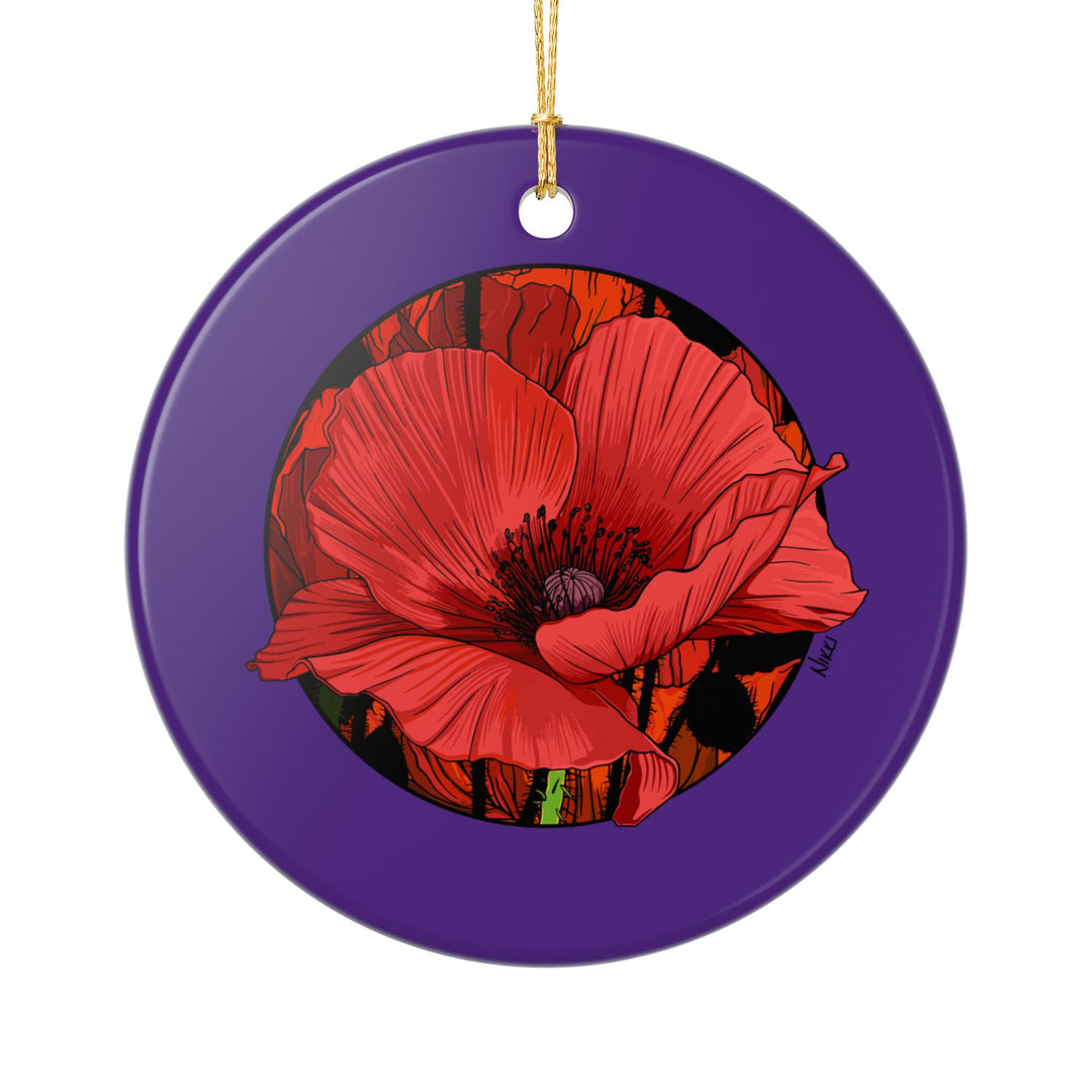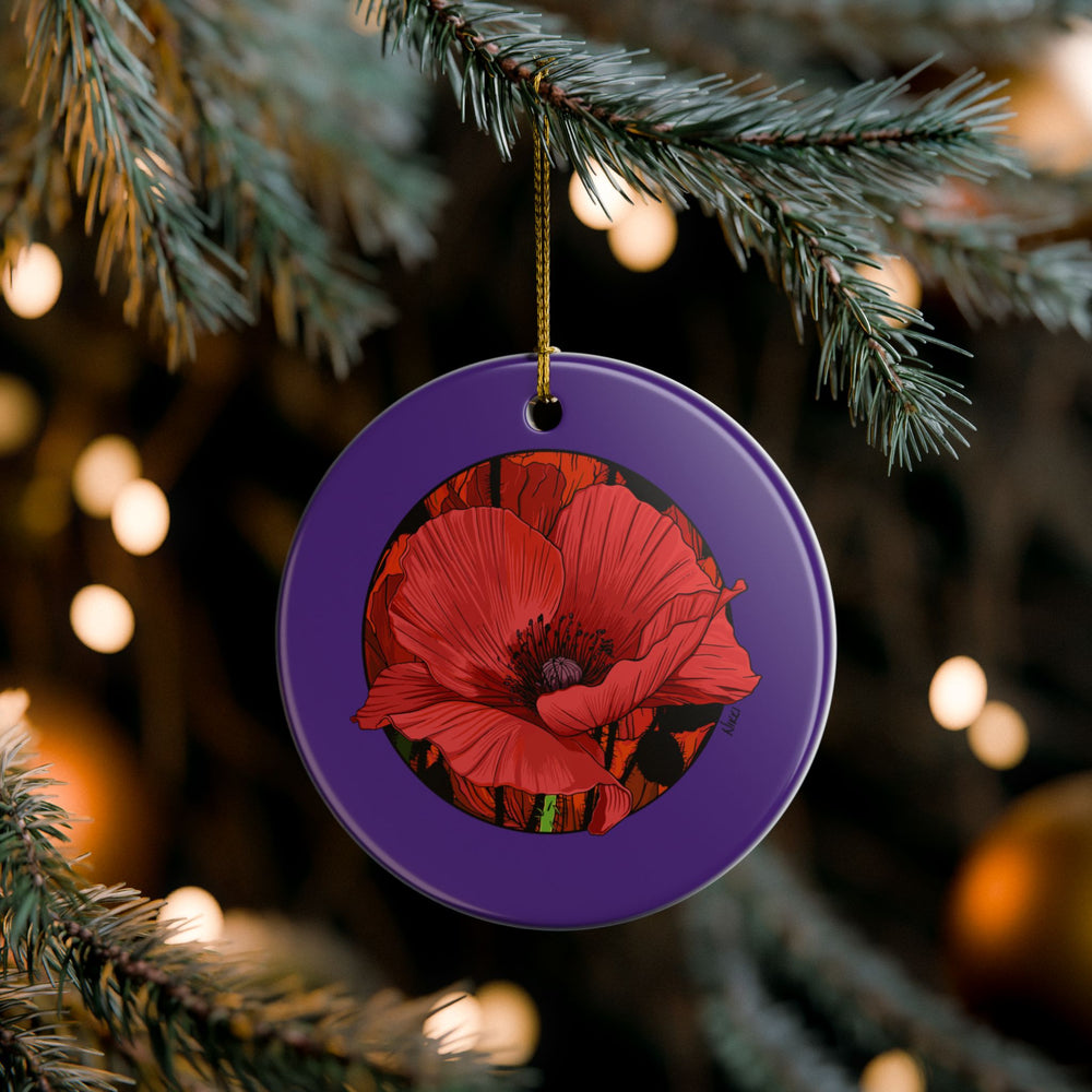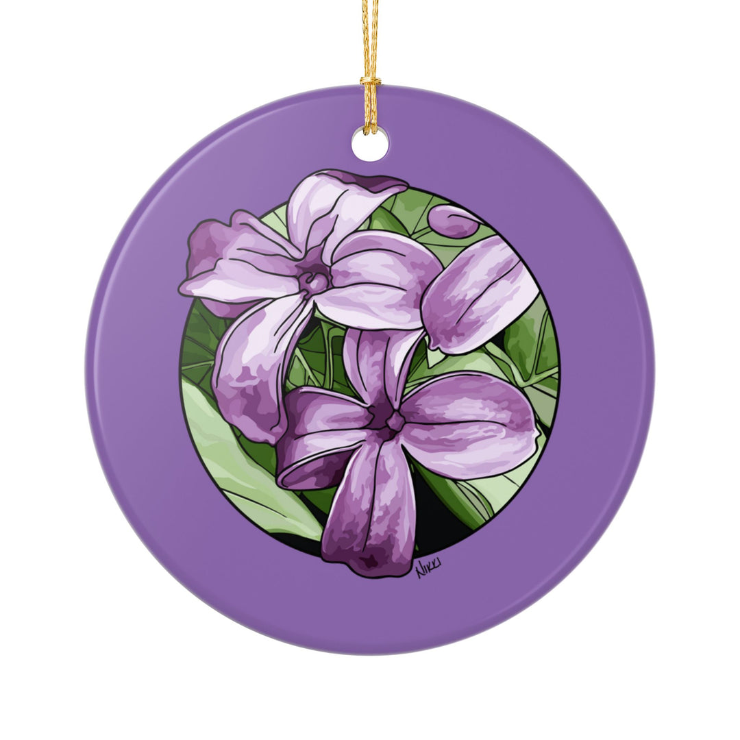 Purple Iris Ceramic Ornament — Double-Sided Floral Holiday Decoration