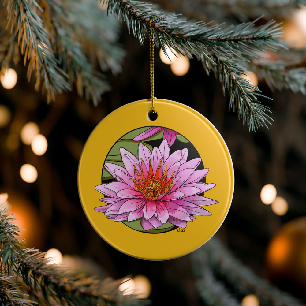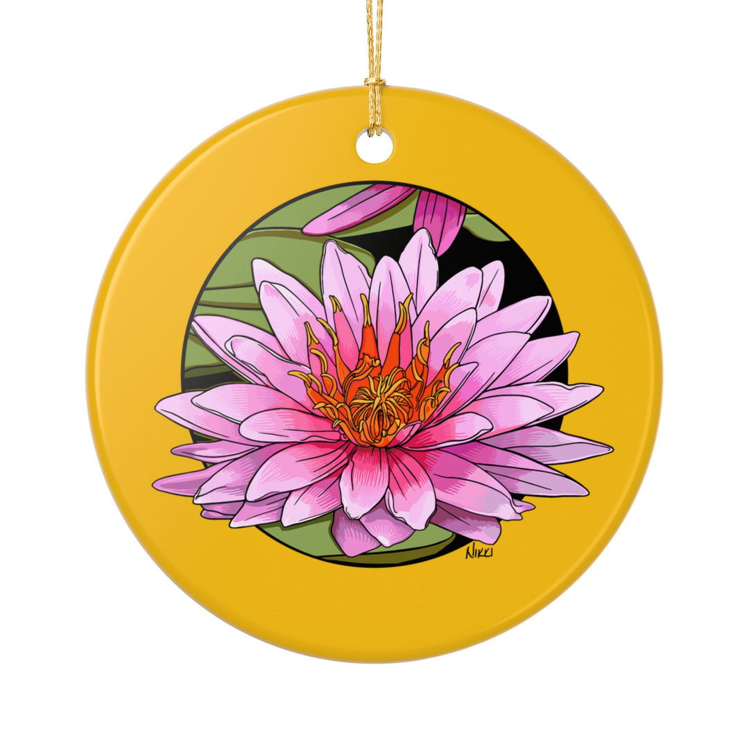 Pink Water Lily Ceramic Ornament — Double-Sided Holiday Decor