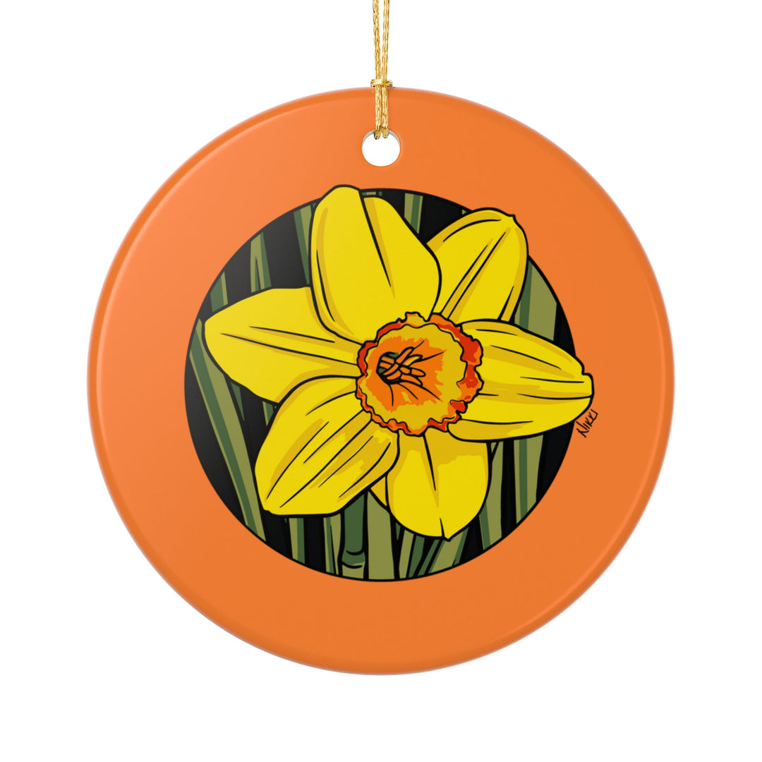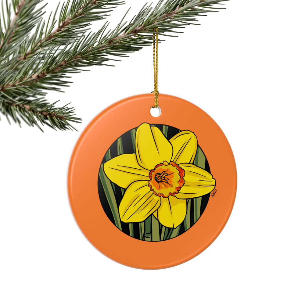 Yellow Daffodil Ceramic Ornament — Double-Sided Floral Holiday Decor
