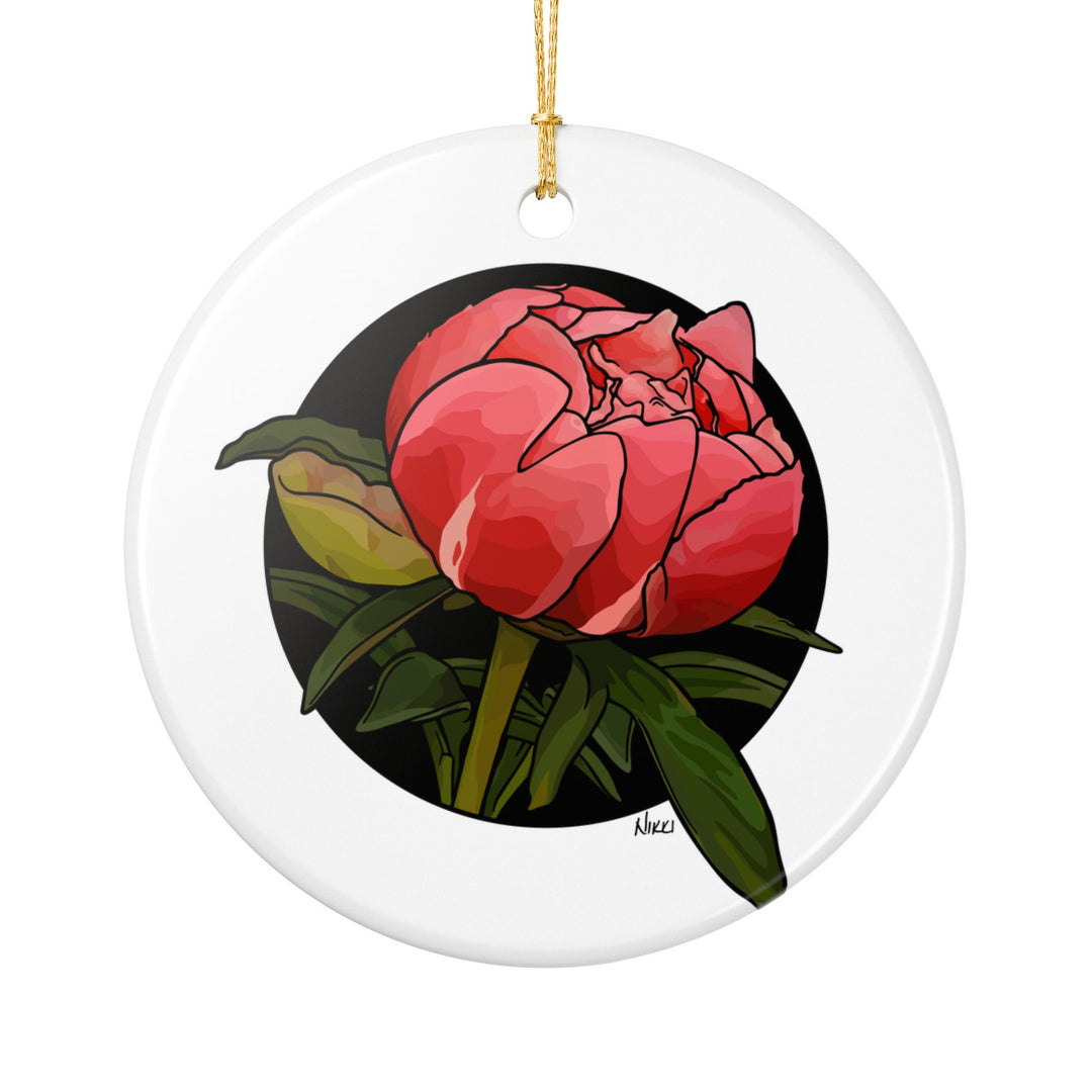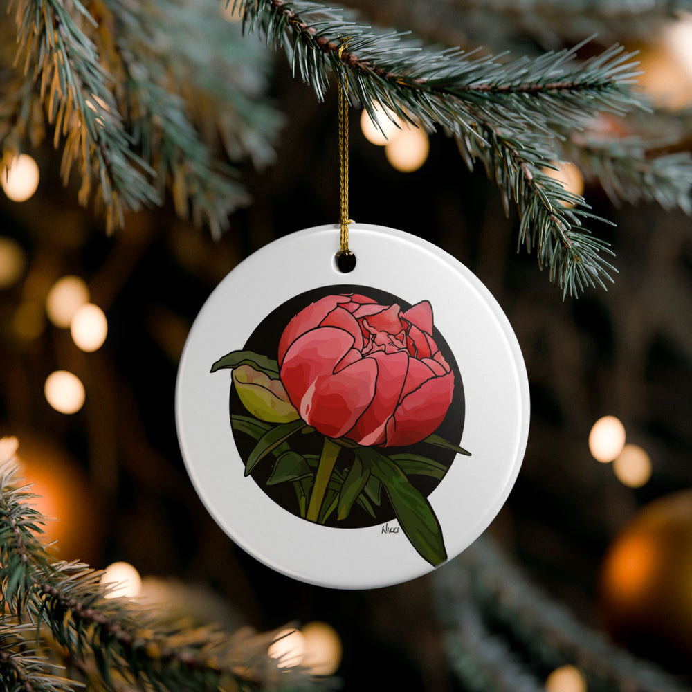 Peony Bud Ceramic Ornament — Two-Sided Floral Holiday Decoration
