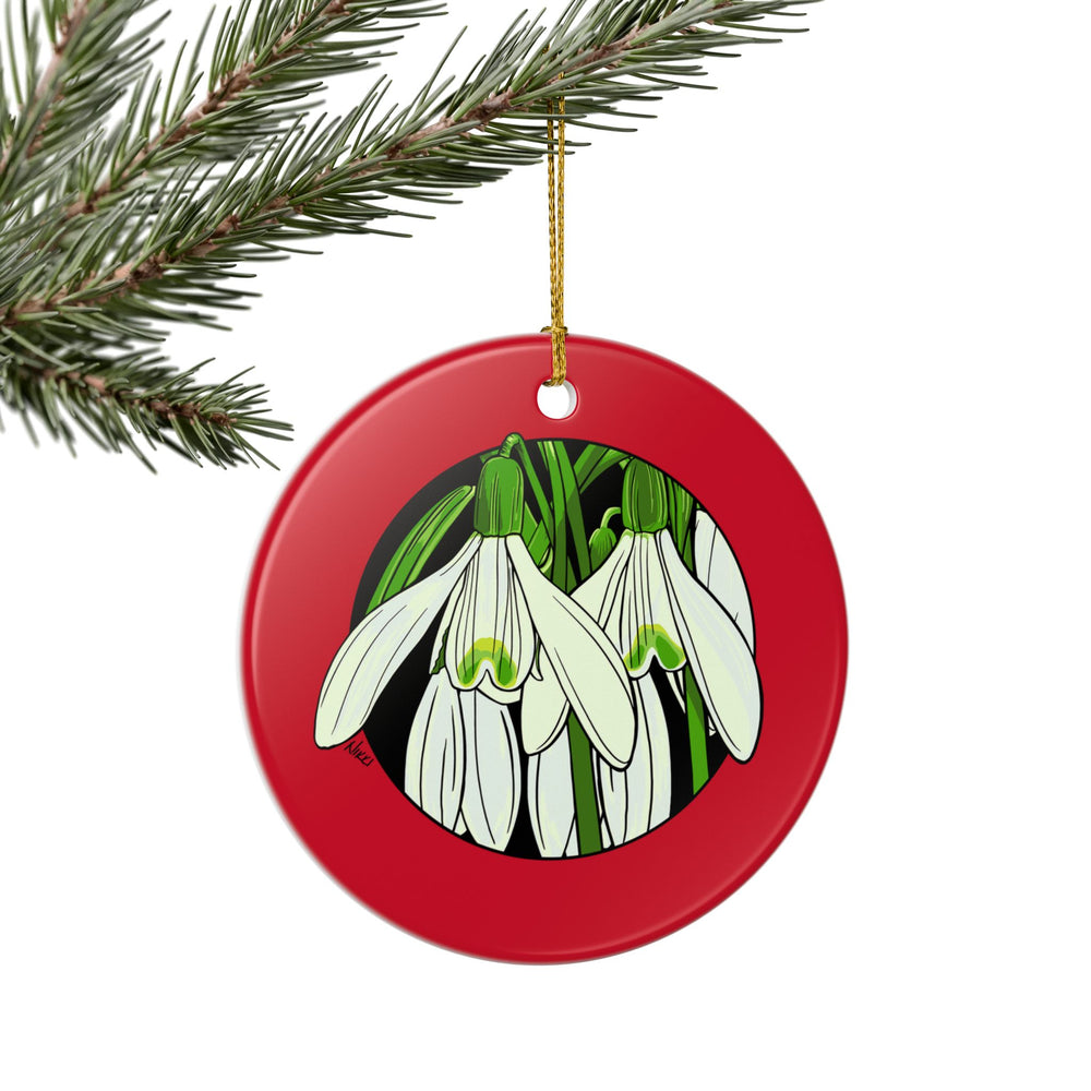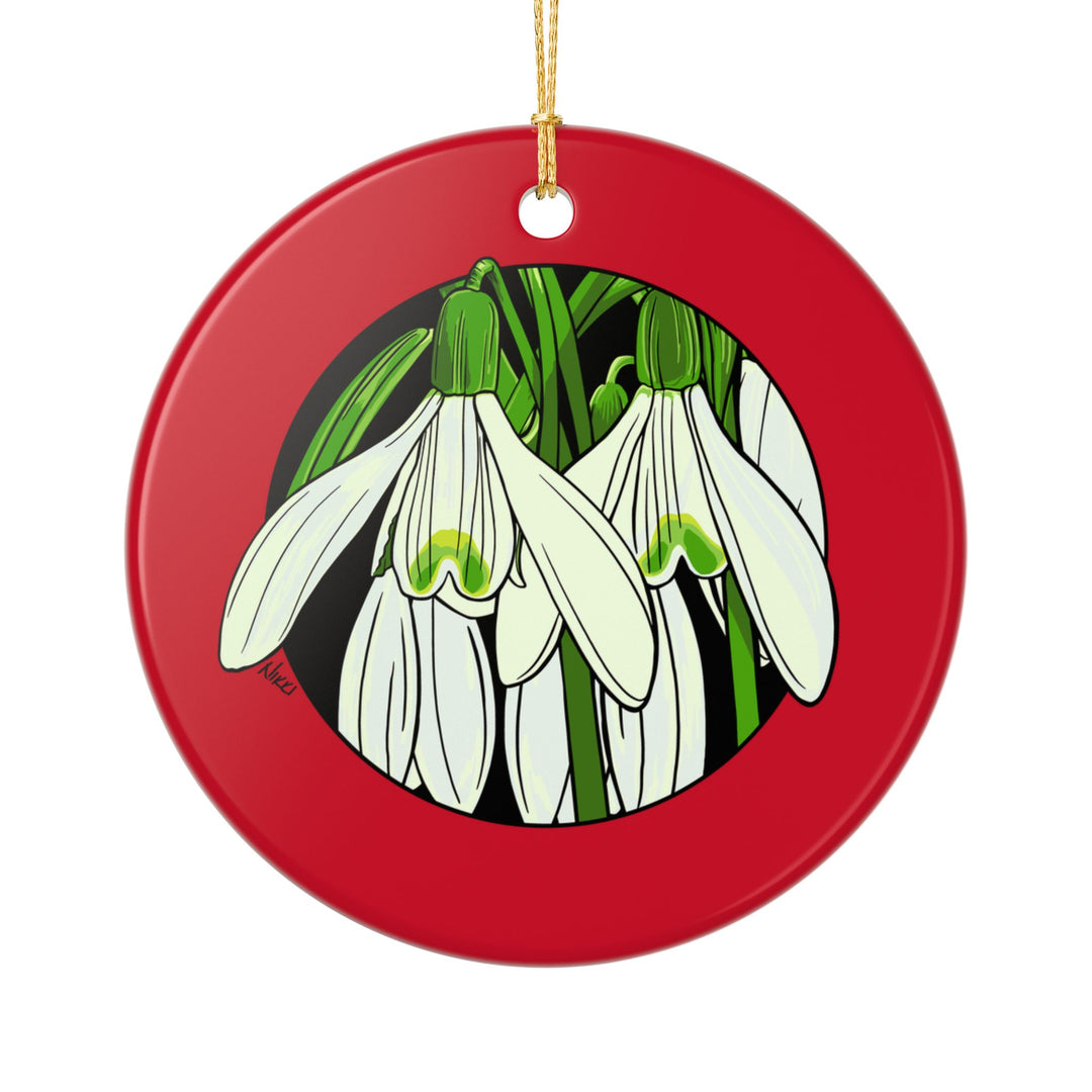 Snowdrop Floral Ceramic Ornament — Double-Sided Holiday Decoration