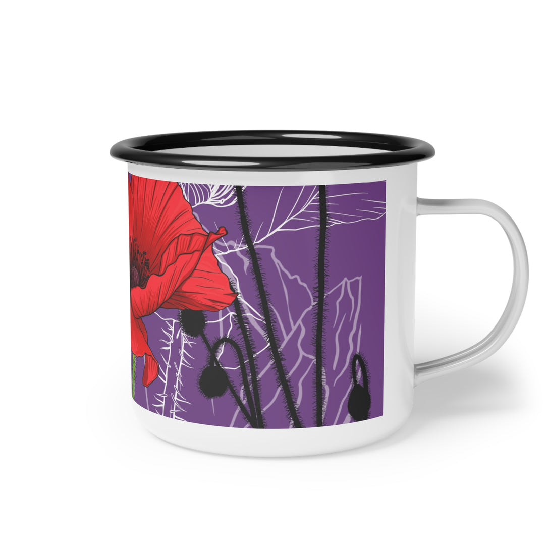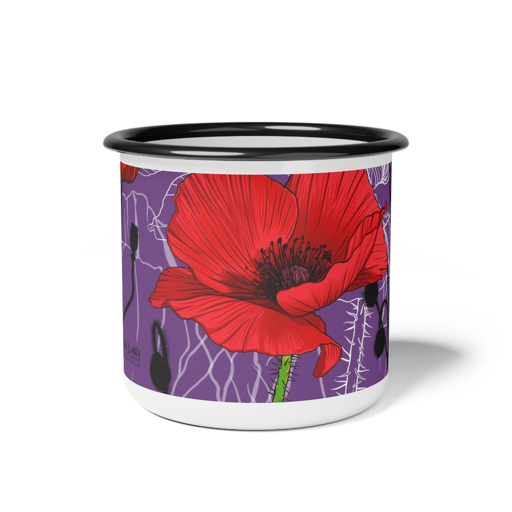 Red Poppies Enamel Camp Cup — August Birth Month Flowers