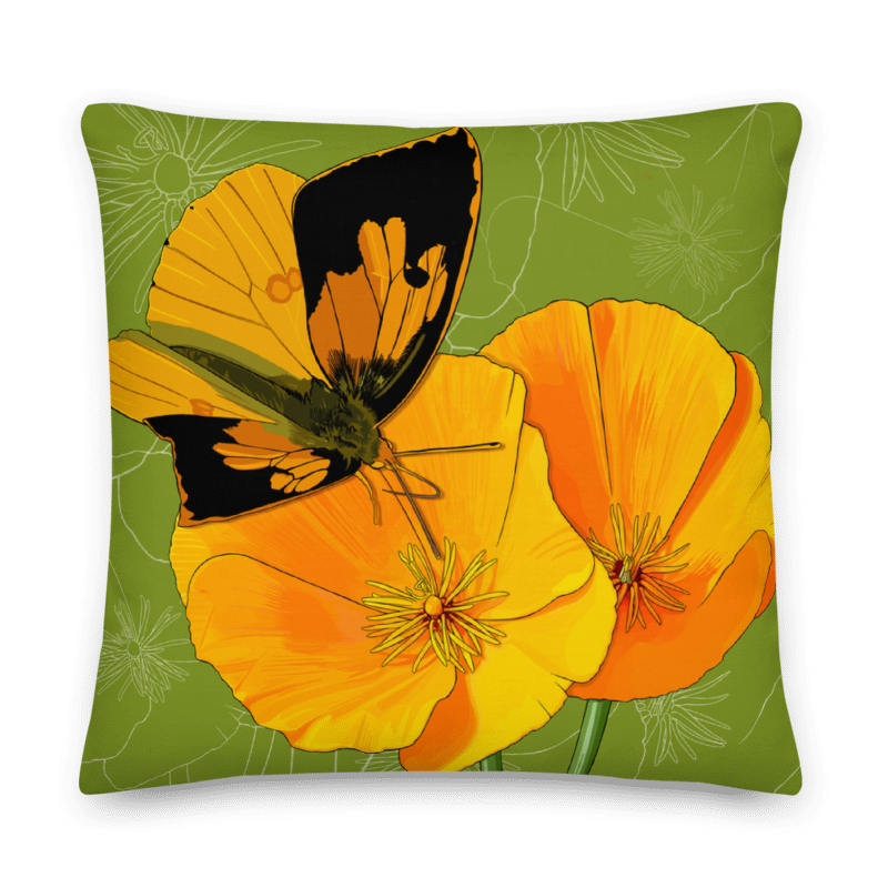 State Flowers + Insects Pillow: California – California Poppy + California Dogface Butterfly