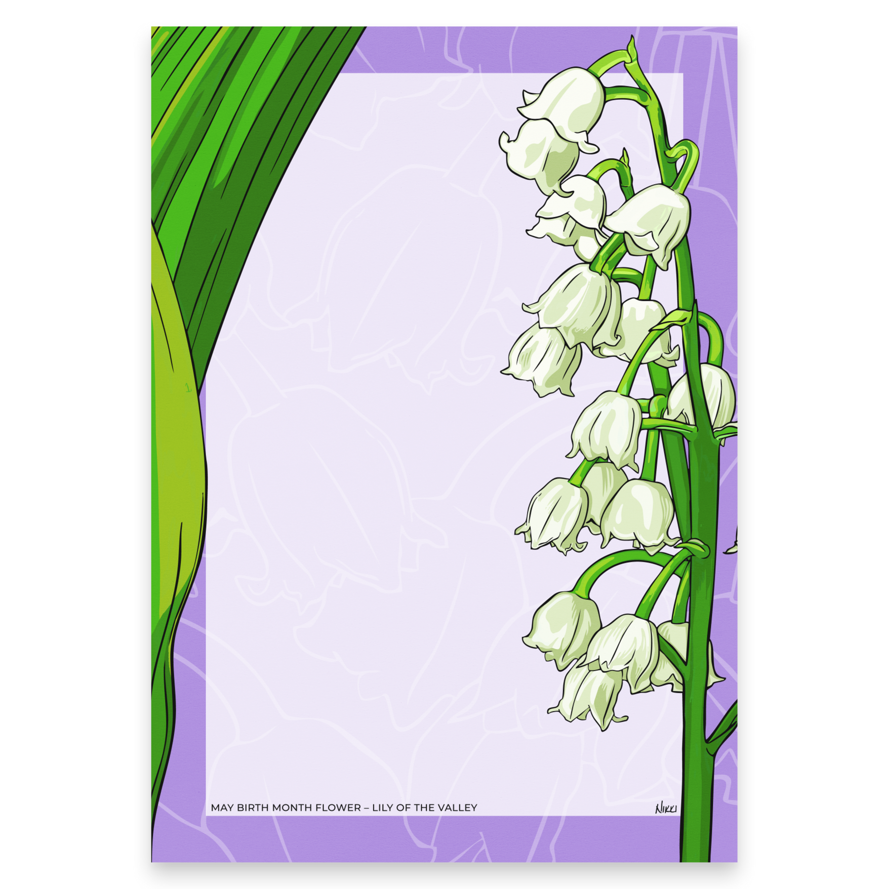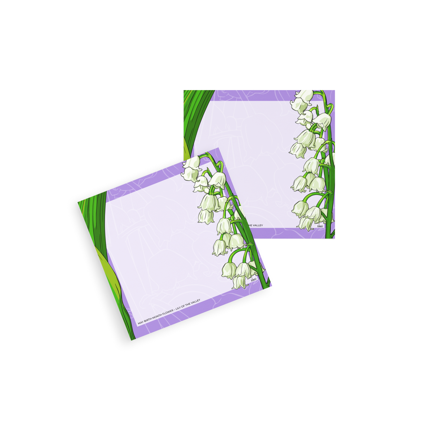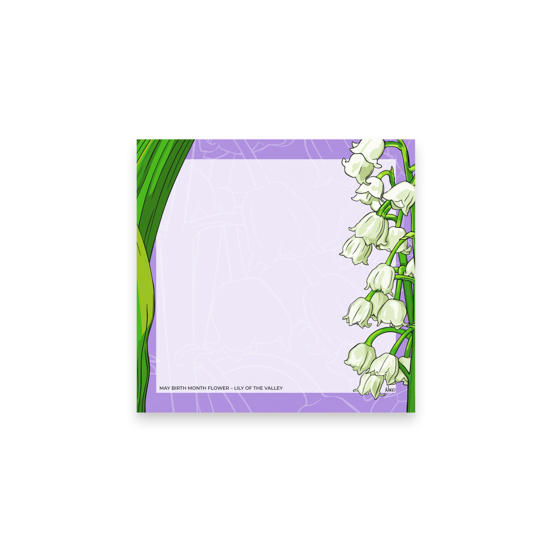 Elegant lily of the valley with a bold purple border and plenty of writing space for lists, reminders and quick notes. 50 sheets per pad.