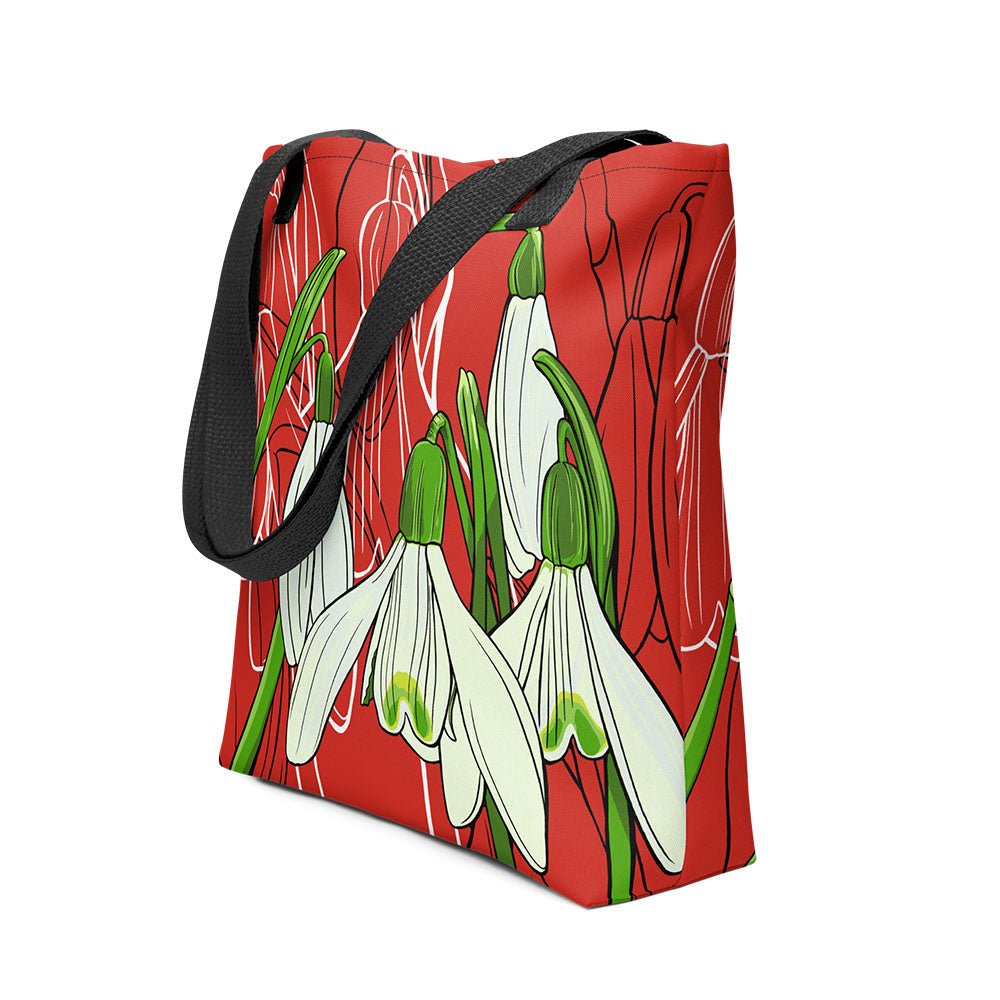 All-Over Print Large Tote Bag with Pocket – Birth Month Flower: January - Snowdrop