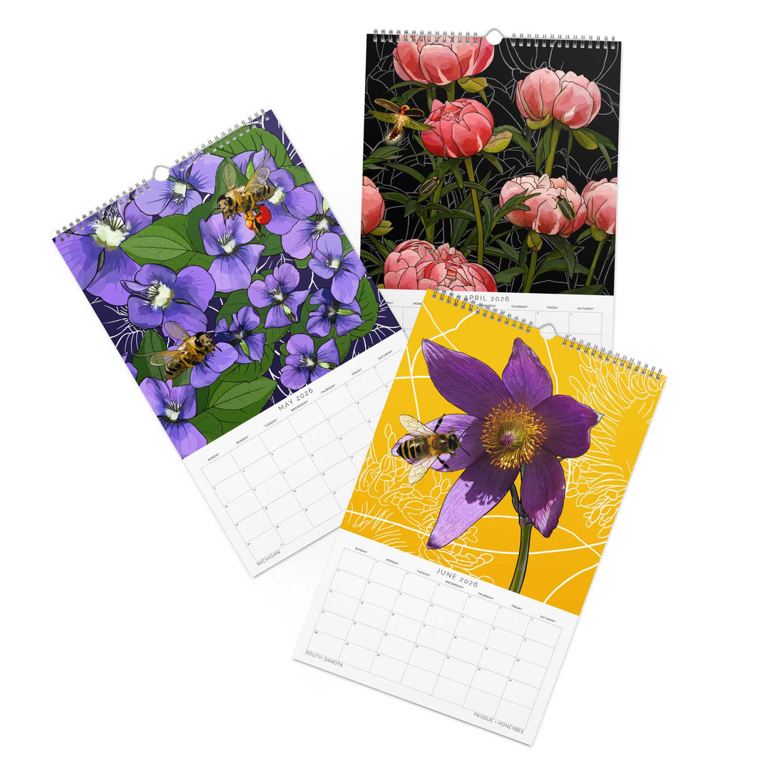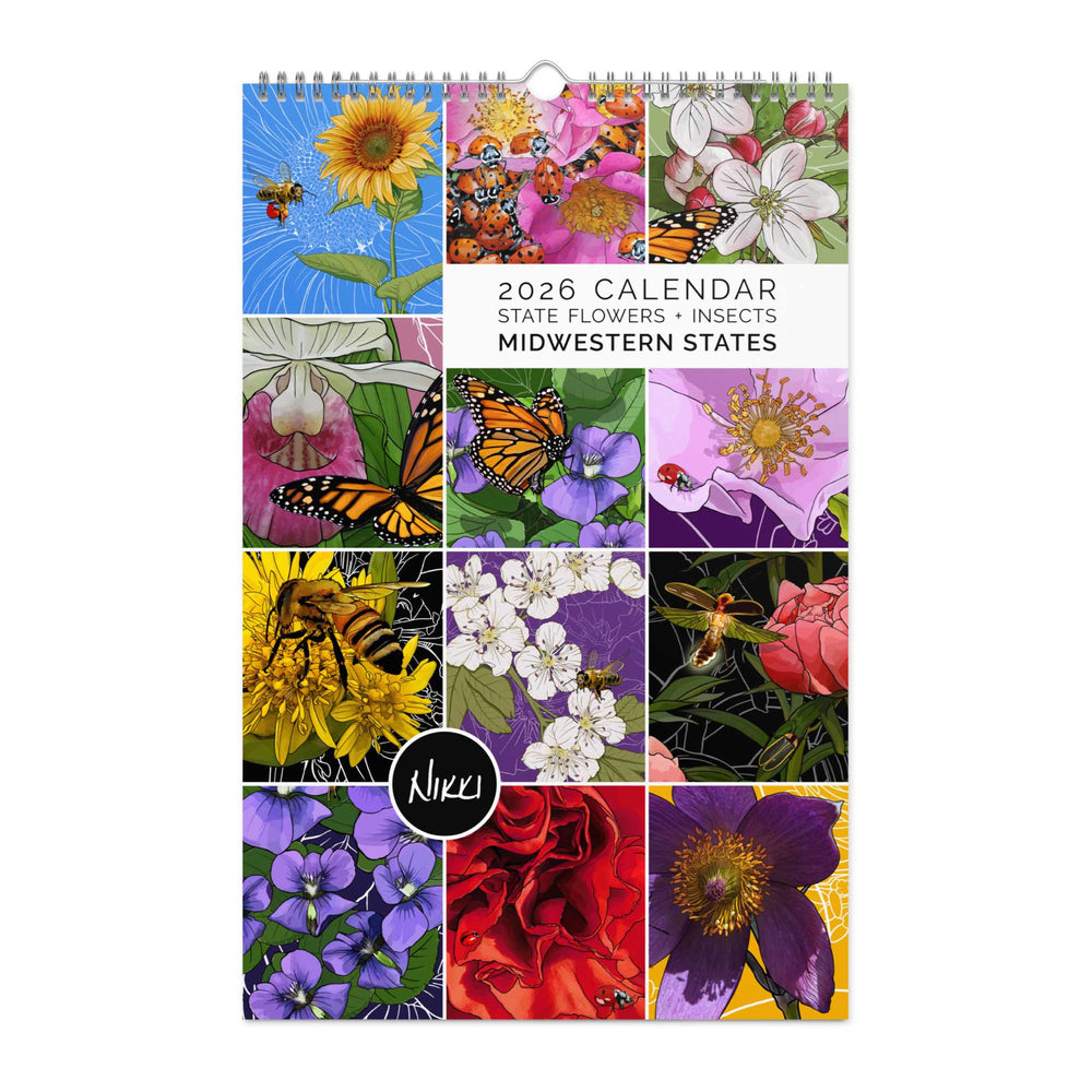 2026 State Flowers + Insects Wall Calendar – Midwestern States