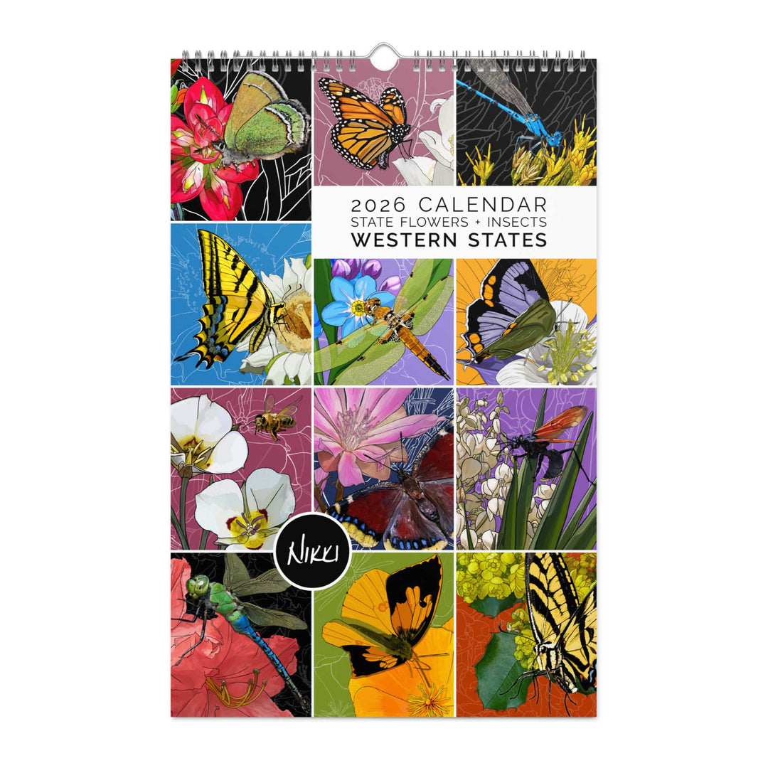 2026 State Flowers + Insects Wall Calendar – Western States